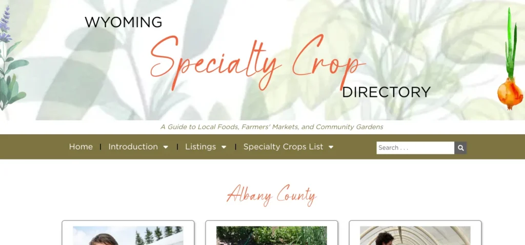 The Wyoming Specialty Crop Directory is a publicly available, online database established by the University of Wyoming Extension, financed by the USDA Specialty Crop Block Grant Program. Its aim is direct: to enhance visibility and market access for “specialty crops” producers statewide.